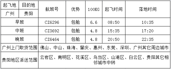 广州到贵阳航空货运每天有多趟航班,每趟航班的空运价格均有一些差异化,星速航空货运公司针对您对时效重要性需求,特推荐当天广州到贵阳空运(早、中、晚)多个航班中优惠航线,如需了解更多广州到贵阳空运价格及航班动态查询请来电或在线咨询,我们将真诚为您服务。